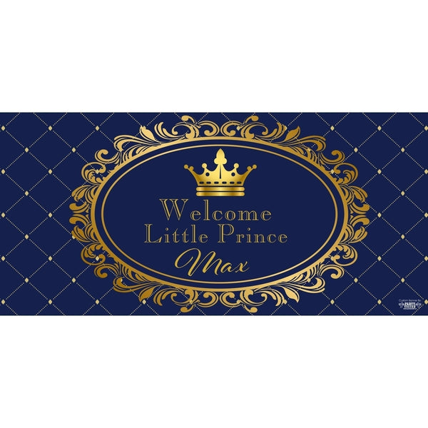 Make your baby shower unforgettable with our Custom Deluxe Baby Shower Blue & Gold Banner. Crafted from durable vinyl, this stunning banner measures 5' wide by 30" tall, ensuring it becomes a striking focal point at your celebration. Each corner features a brass grommet for easy hanging, allowing you to display it effortlessly.