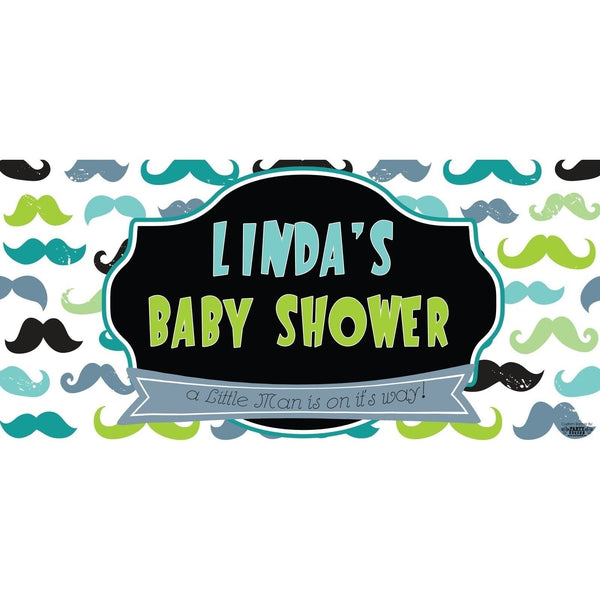 Introducing our Banner - Custom Deluxe Baby Shower Blue & Green Mustaches, the ideal decoration for your celebration! Crafted from high-quality, durable vinyl, this striking banner measures an impressive 5 feet wide by 30 inches tall, ensuring it captures attention at your baby shower.