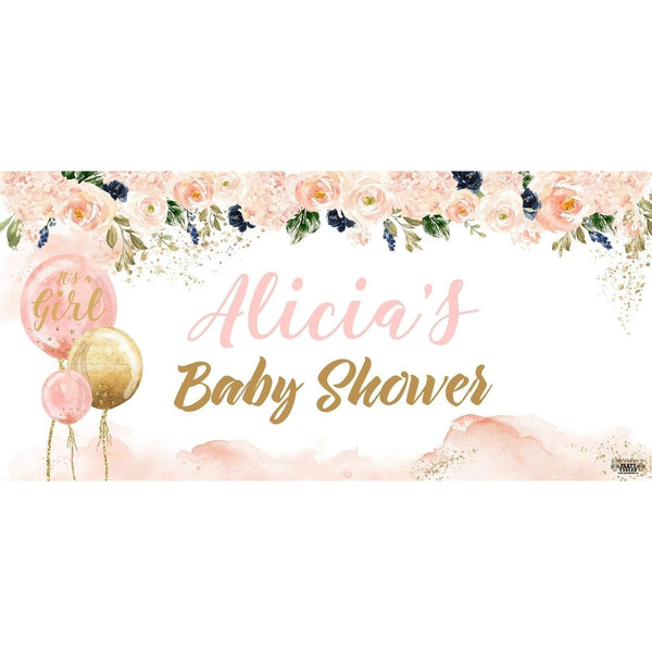 Make your celebration unforgettable with our Banner - Custom Deluxe Baby Shower Pink Flowers & Balloons. This stunning banner adds a touch of elegance to any baby shower, enveloping your event in a delightful atmosphere.