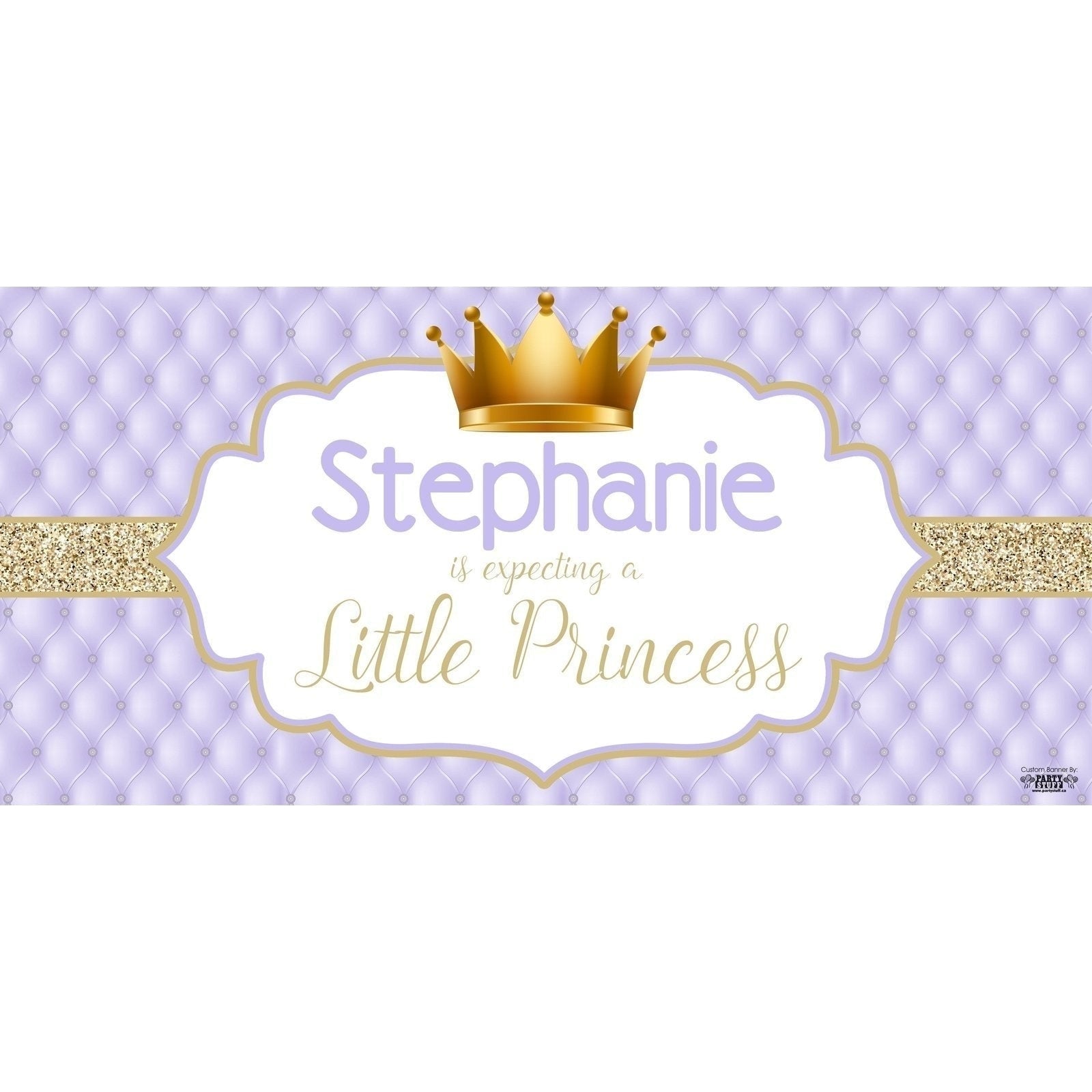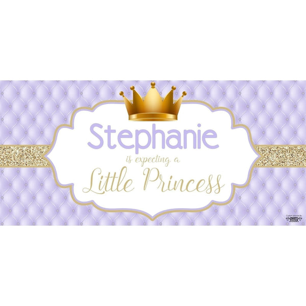 Introducing the stunning Banner - Custom Deluxe Baby Shower Purple & Gold Crown, the perfect addition to your baby shower celebration! This beautifully designed banner is crafted from durable vinyl, ensuring it withstands the festivities while adding a touch of elegance to your decor.