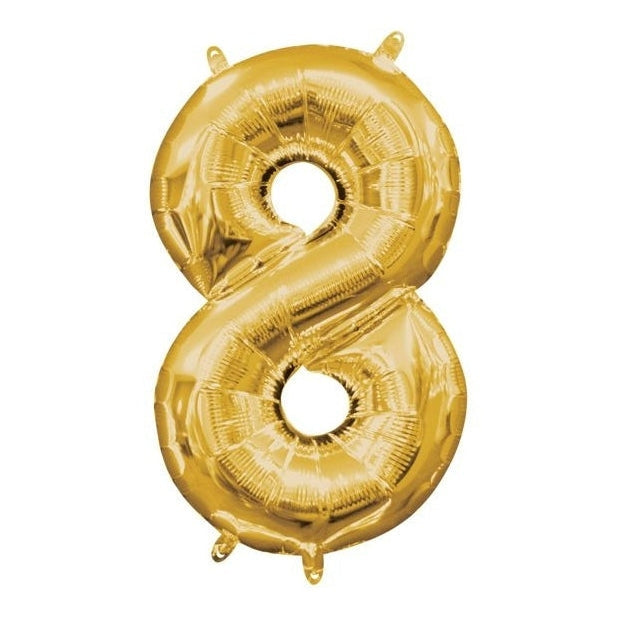 Measuring 16 inches, the Foil Balloon - Mini Number Gold 8 (16 Inch Air-filled Only) is lightweight and versatile. Hang it from the ceiling, attach it to a gift, or incorporate it into a larger balloon arrangement to enhance your decor. This balloon's combination of elegance and functionality makes it a must-have for any celebration. Don’t miss out—order yours today and infuse a touch of glamour into your next event!
