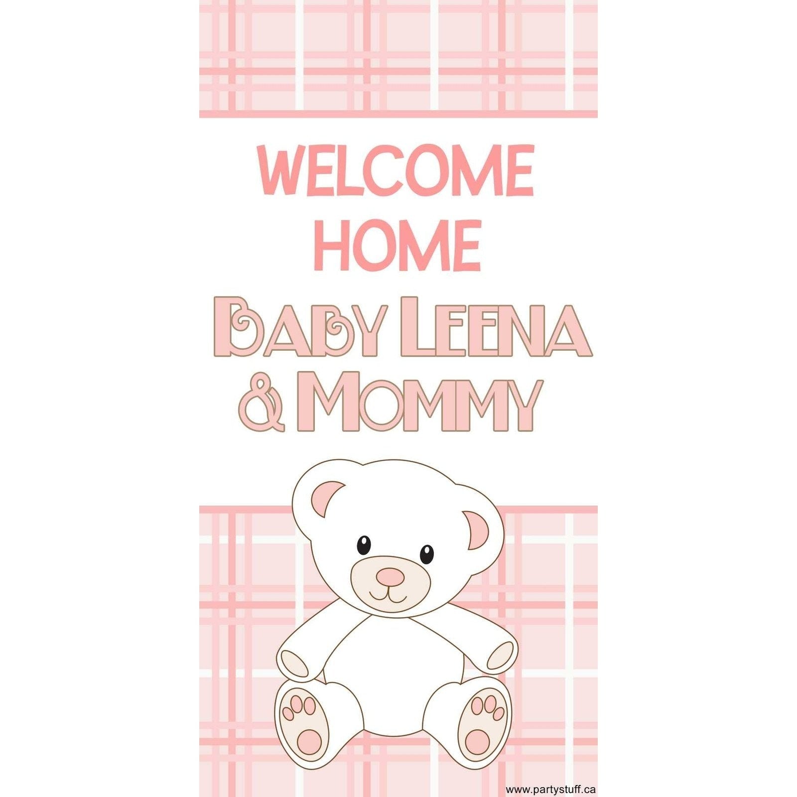 Welcome home in style with our Customizable Deluxe Door Banner - Welcome Home Baby Pink. Perfect for celebrating new beginnings, this stunning banner is designed to make any entrance feel special. Measuring 30" wide by 58" tall, it provides an eye-catching display that sets the mood for your event.