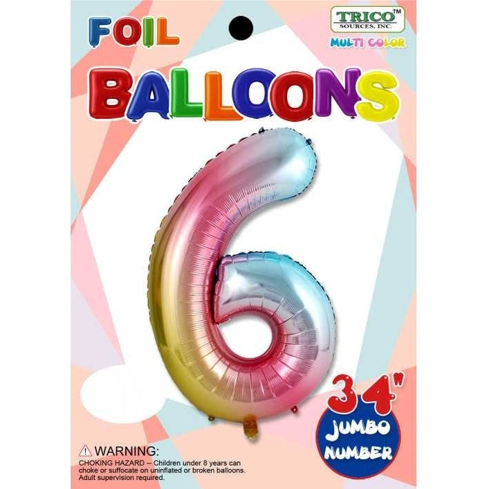 Transform your celebrations with the vibrant Foil Balloon - Jumbo Number 34" Pastel Rainbow 6. Perfect for birthdays, anniversaries, and festive gatherings, this stunning balloon adds joy and excitement to any event.