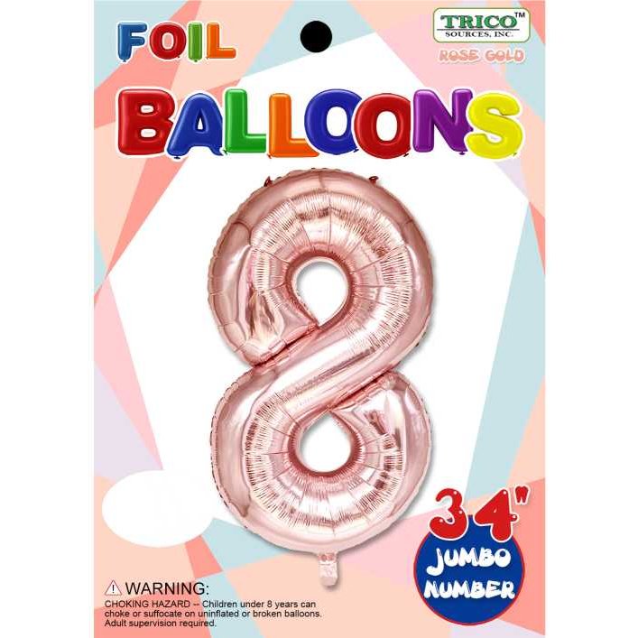 Enhance your celebrations with our exquisite Foil Balloon - Jumbo Number 34" Rose Gold 8. This stunning balloon is the perfect choice for milestone birthdays, anniversaries, or any memorable occasion where you want to shine.