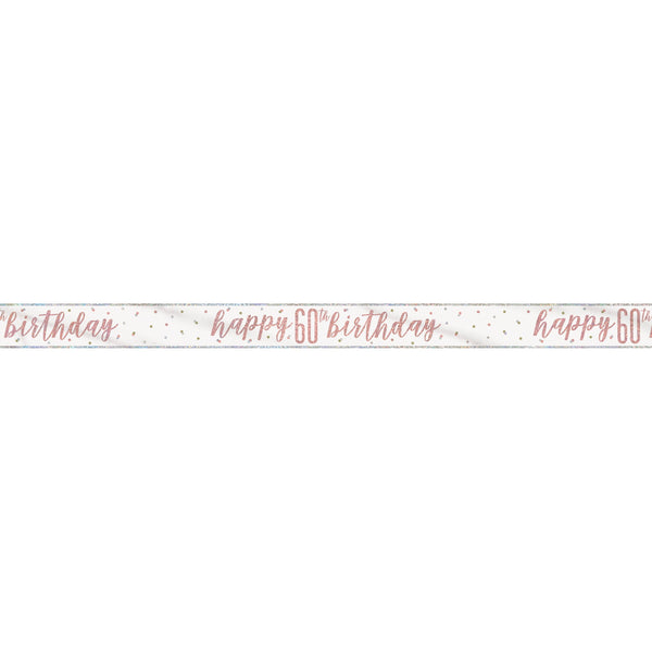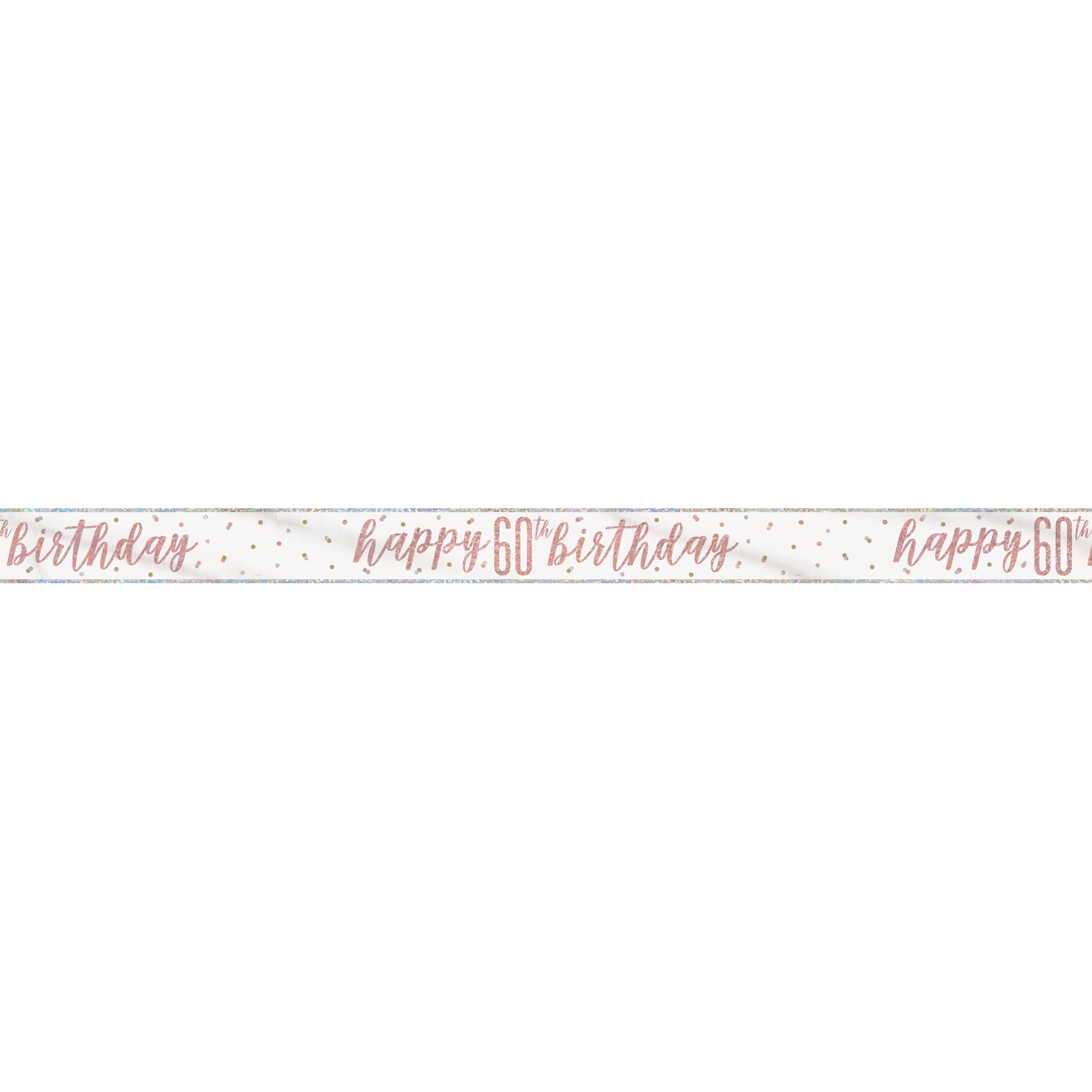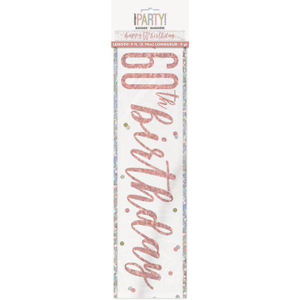 Transform your 60th birthday party into a remarkable event with the 1 9' Glitz Rose Gold Foil Banner "Happy 60th Birthday". It's more than just a decoration—it's a striking statement piece that emphasizes the significance of this special milestone. For an even more cohesive look, pair it with other rose gold-themed decor and let the celebrations begin!