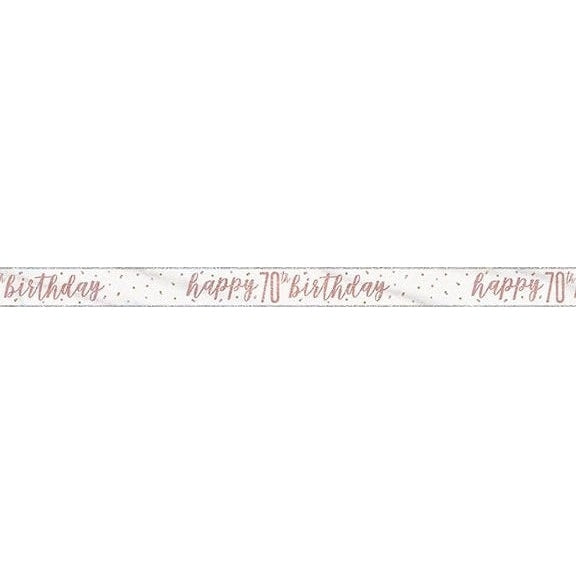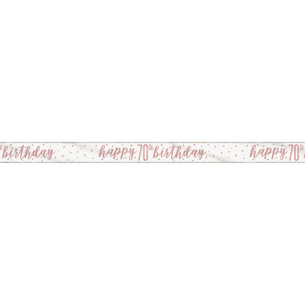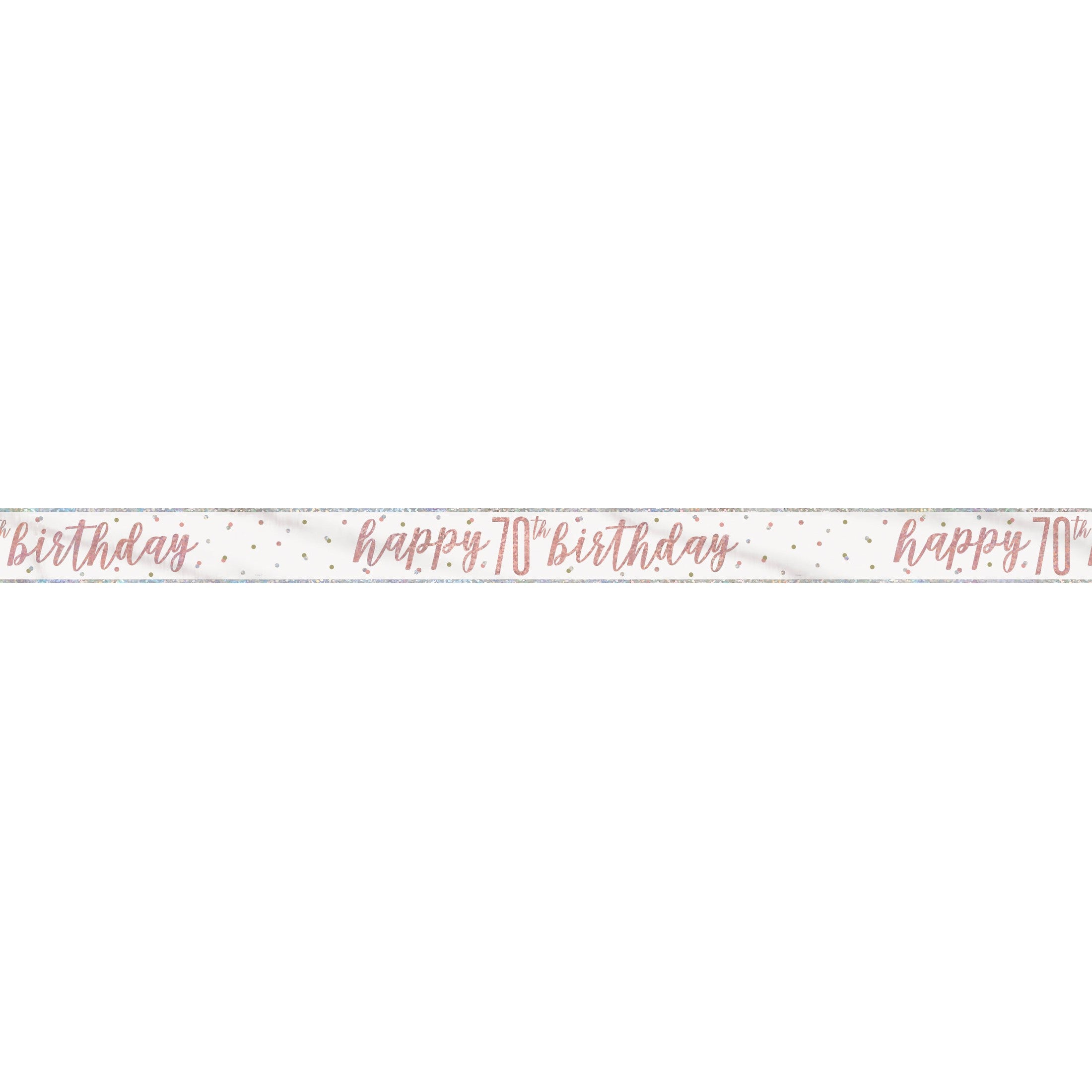 Elevate your celebration with the stunning 1 9' Glitz Rose Gold Foil Banner "Happy 70th Birthday". This exquisite banner is the perfect accent for any 70th birthday party, radiating elegance that your guests will remember.