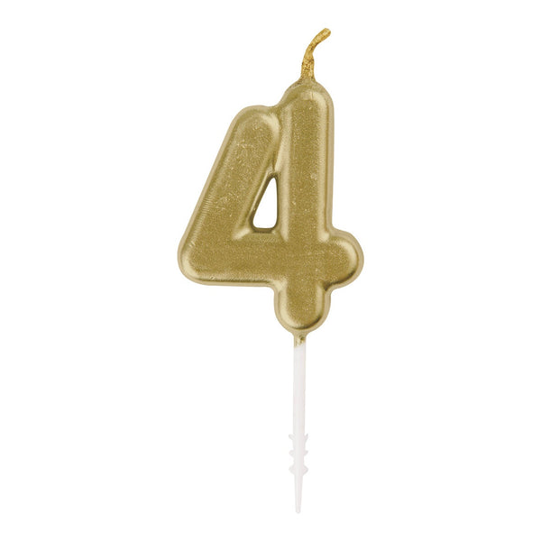 Celebrate milestones with our Candle - Number 4, Mini Metallic Gold, Pick, Birthday. This exquisite candle adds elegance to any birthday cake, perfectly capturing the joy of turning four.