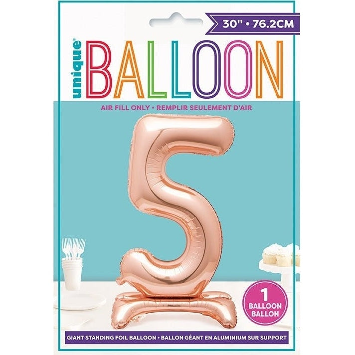 Celebrate in style with our Balloon - Foil, Rose Gold, Number 5 Shaped, Standing, 30". This stunning balloon is perfect for birthdays, anniversaries, or any milestone celebration. Its impressive 30-inch size and beautiful rose gold finish make it an eye-catching centerpiece at any event.