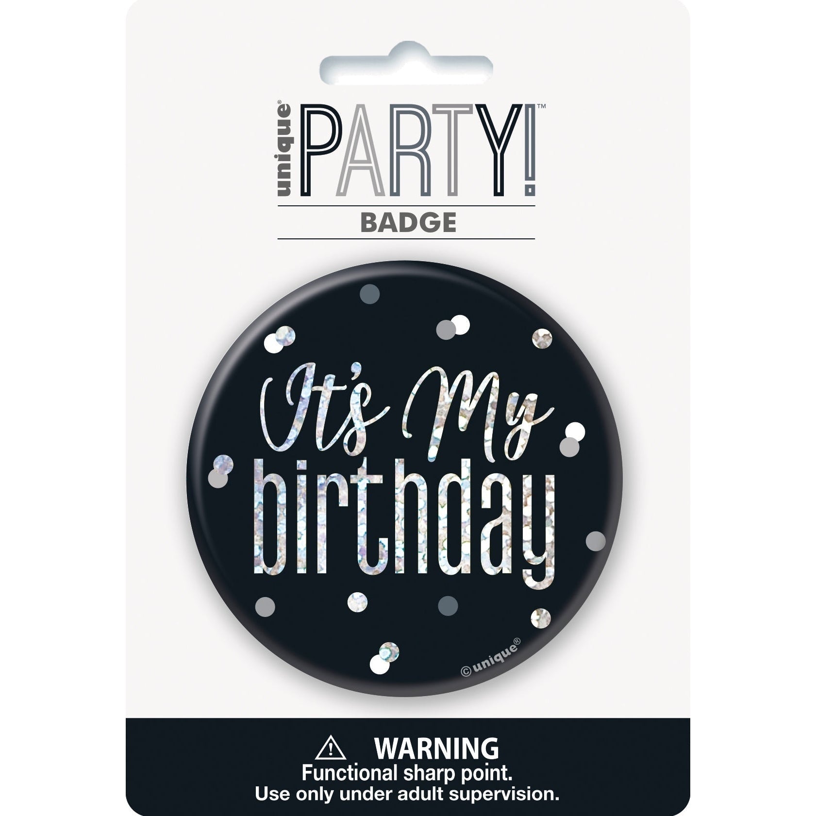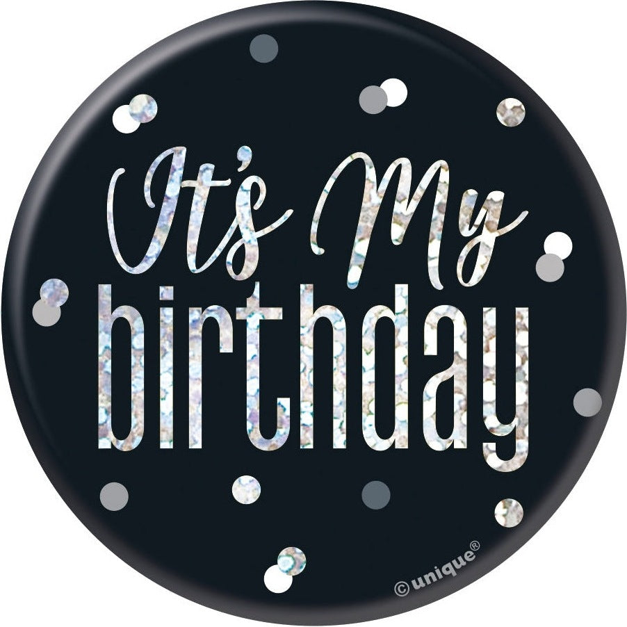 The Badge - Birthday, Glitz, Black & Silver, "It's My Birthday" is not just a decoration; it's a celebration of you! It enhances your birthday experience, making you feel special and appreciated. This badge is an excellent way to make yourself the center of attention, ensuring everyone knows it’s your big day!