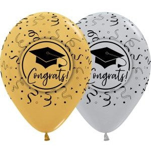 Celebrate your grad in style with this vibrant set of 50 assorted 11" latex balloons in shimmering gold and silver. Perfect for adding a festive touch to any graduation party, these balloons bring a fun and sparkling vibe that’s sure to impress. Easy to inflate and decorate with, they’ll help you create a memorable celebration full of joy and congratulations!
