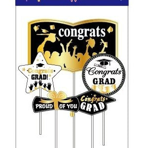 Celebrate your special day in style with our 5 Congrats Grad Cake Picks, designed to add a delightful touch to your graduation cake! These eye-catching picks not only elevate the look of your dessert but also enhance the festive atmosphere of your graduation party.