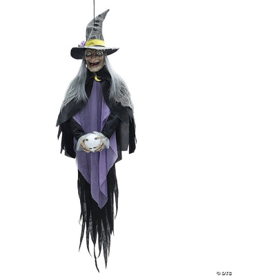 Bring a spine-chilling vibe to your Halloween decor with our 5ft Hanging Hag Halloween Prop. This eerie figure sways ominously, featuring: Glowing Green LED Eyes: Watch her gaze pierce through...
