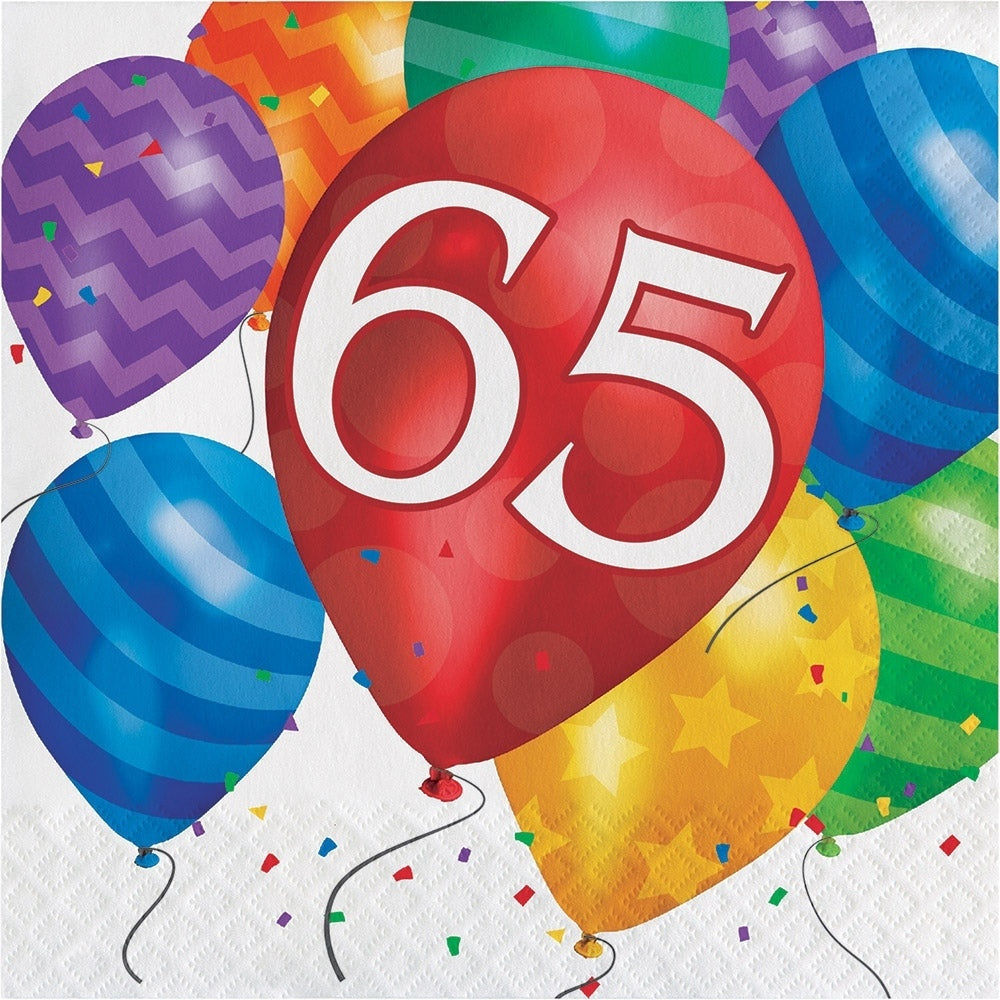 Celebrate this significant milestone with our Balloon Blast 65th Birthday Napkins. Perfect for adding a splash of color to your festivities, these napkins are a must-have for any 65th birthday party. Each package includes 16 high-quality napkins that effortlessly enhance your birthday theme.