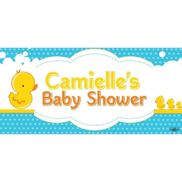 Introducing the perfect decoration for your special occasion: our Banner - Custom Deluxe Baby Shower Blue Dots & Ducks. This beautifully designed banner features charming blue dots and adorable duck motifs, making it ideal for celebrating the arrival of your little one.