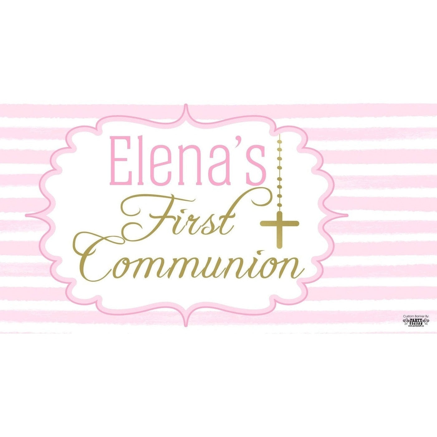 Introducing our stunning Banner - Custom Deluxe Religious Pink & Gold, the perfect addition to your special celebrations! This beautifully designed banner features elegant pink and gold hues, making it ideal for significant religious milestones such as baptisms and confirmations.