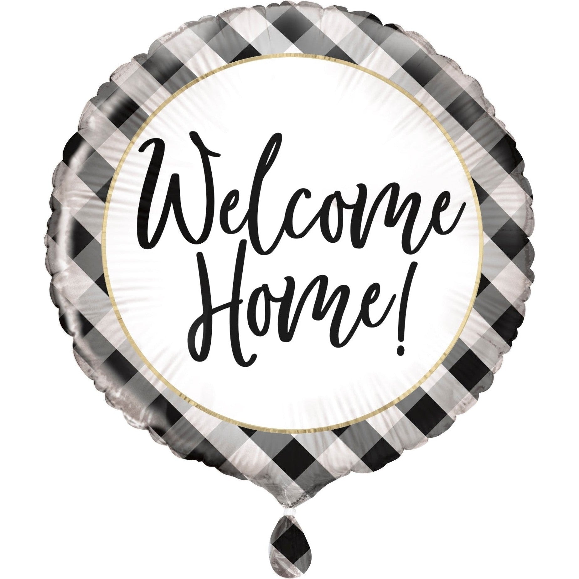 When you order our Balloon - Foil, Black and White "Welcome Home", Round, 18", it arrives uninflated, giving you the flexibility to inflate it at your convenience. Enjoy the complimentary helium inflation services available at all Party Stuff stores; just bring your proof of purchase. If you prefer, you can also order a helium-filled balloon bouquet for pickup or delivery to make your celebration even more special!