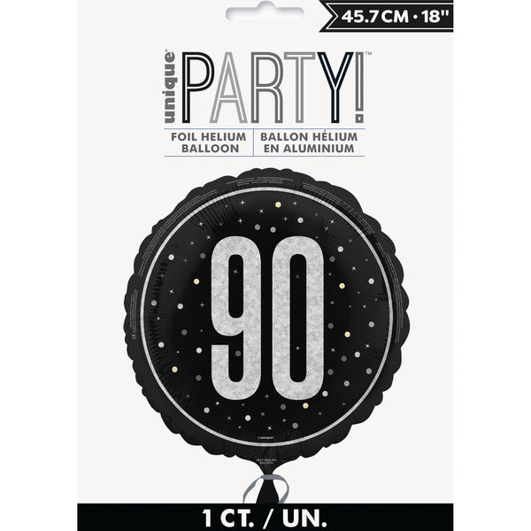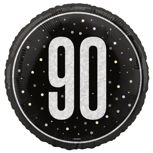 Black Glitz 18" Foil Baloon, 90th Birthday