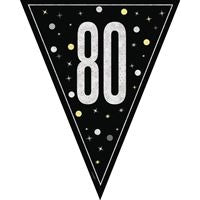 Celebrate a milestone moment in style with our Black & Silver 80th Birthday Flag Banner. This stunning decoration combines elegance and festivity, making it the perfect addition to any 80th birthday celebration. Crafted with high-quality materials, this banner is designed to withstand both indoor and outdoor use, ensuring that your decor remains vibrant and eye-catching throughout the festivities.