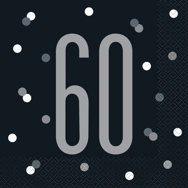 Make your celebration unforgettable! Order your pack of Black & Silver Glitz 60th Birthday Luncheon Napkins today and toast to 60 fabulous years!