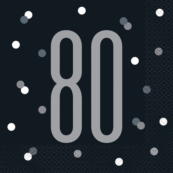 Make your milestone celebration truly unforgettable with our Black & Silver Glitz 80th Birthday Luncheon Napkins. Designed to add a touch of elegance, these napkins honor the cherished memories of 80 incredible years.