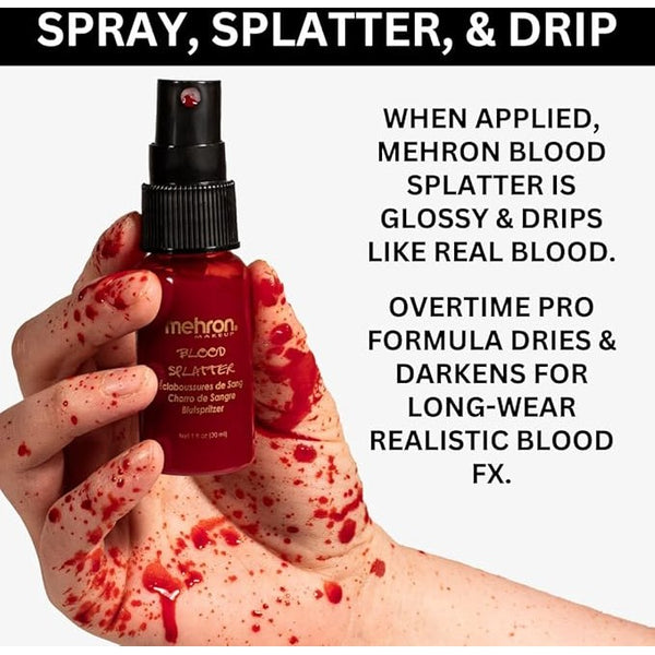 Add a spooky splash to your costume or party with this 1oz Blood Splatter Spray in a handy pump bottle. Perfect for quick, mess-free effects, it lets you create realistic splatters that instantly up the fright factor. Easy to use and great for Halloween or theatrical fun!