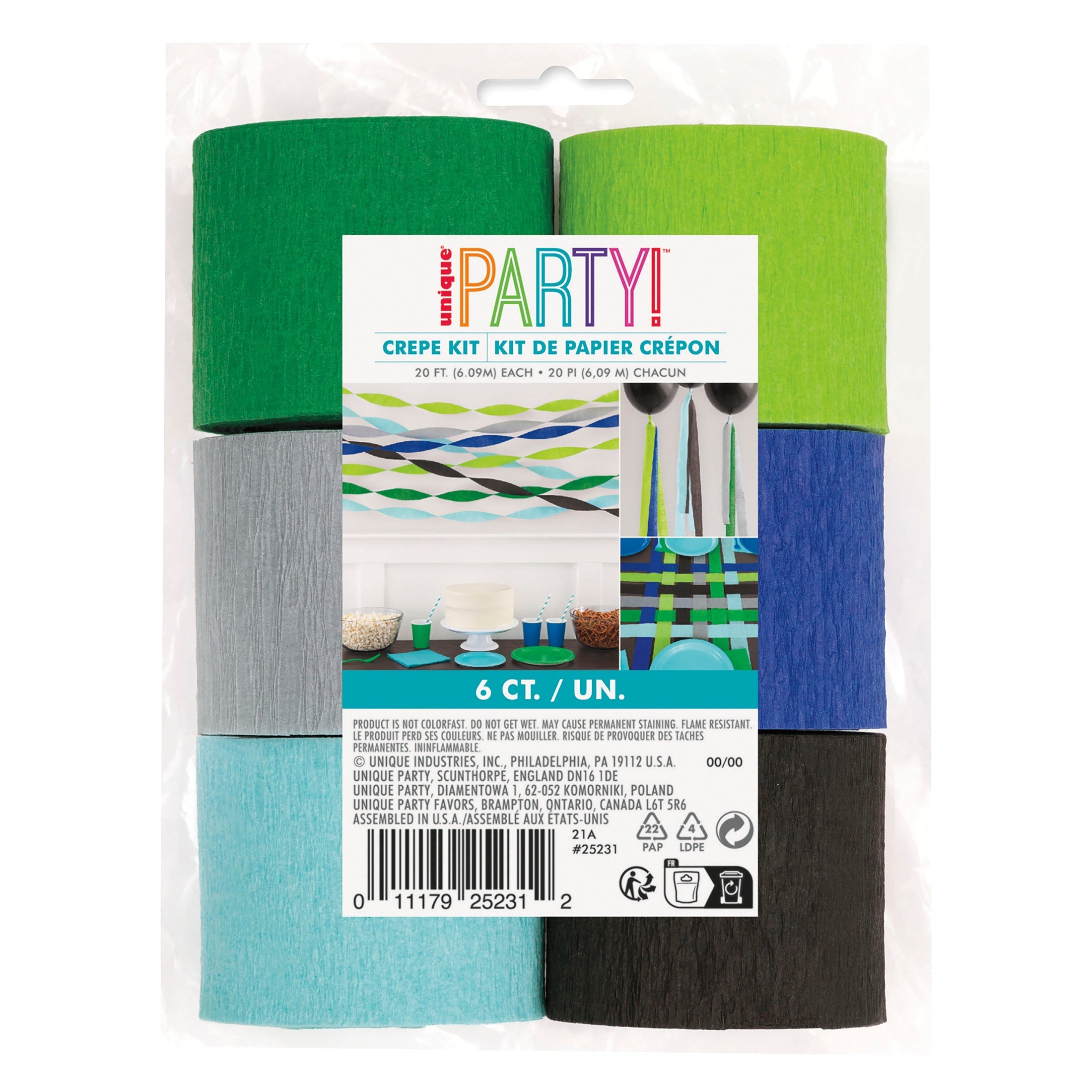 Transform your celebrations with our Blue & Green Crepe Paper Streamer Kit. This vibrant kit includes six rolls of high-quality crepe paper streamers, perfect for every occasion, from birthday parties to holiday gatherings.