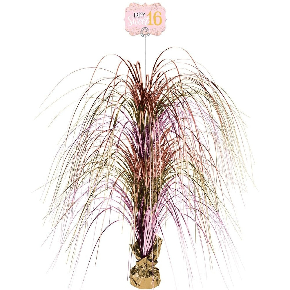 Elevate your event decor with the stunning Blush Sixteen Large Spray Centerpiece. Standing at an impressive 28 inches, this centerpiece is perfect for adding a touch of elegance and sophistication to your celebrations. Crafted from high-quality foil, it glimmers beautifully under any lighting, making it an eye-catching focal point for tables at weddings, birthday parties, or any special occasion.