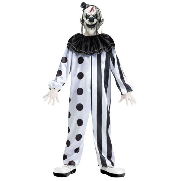 Designed for kids who love a scare, this fearless clown outfit blends high-contrast colors, dramatic silhouette, and kid-friendly comfort to keep up with nonstop party hopping. Easy to wear, stage-ready, and built for repeat wear.