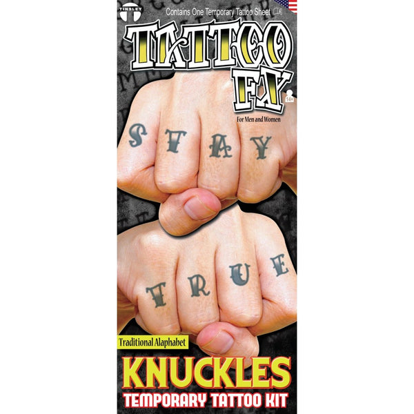 Unleash bold, vintage-inspired knuckle art with the Character Tattoo Kit Knuckles - Alphabet Traditional. This kit captures the crisp, iconic alphabet lettering that graces classic knuckle tattoos, letting you express words and messages with unmistakable character and edge.