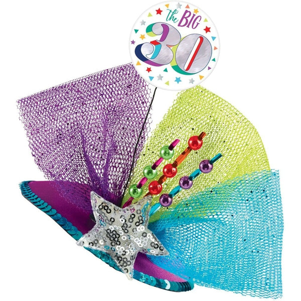 This hat not only adds a playful touch to your outfit but also serves as a wonderful keepsake to remember the milestone of turning 30. It's a fantastic conversation starter that enhances your celebration experience. Whether you're hosting a party, attending an event, or just want to feel festive, the Clip On Couture Hat - 30th is the perfect accessory to elevate your style and commemorate this exciting chapter of your life.