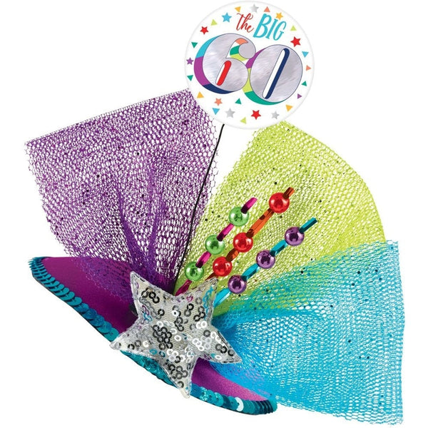Make your 60th birthday unforgettable with the Clip On Couture Hat - 60th. Order yours today and be the life of the party!