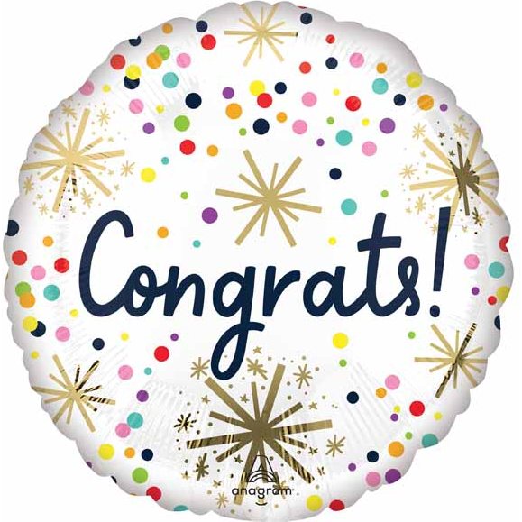 Celebrate achievements in style with the Confetti Congrats 18" Foil Balloon. Perfect for graduations, promotions, or any joyous occasion, this vibrant balloon adds a cheerful touch to your event decor. Its eye-catching confetti design ensures it stands out, creating an unforgettable centerpiece.
