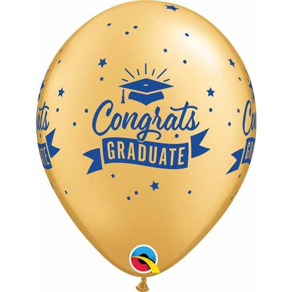 Order your Congrats Graduate 11" Gold with Blue Ink Latex Balloons today and make this graduation celebration unforgettable!