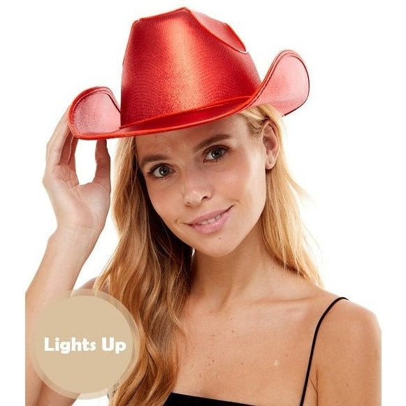 Introducing the Hat - Cowboy, Neon Light Up Red, the ultimate accessory to elevate your style and make a bold statement! This eye-catching cowboy hat features vibrant neon lights that illuminate in a striking red, ensuring you stand out at any event or gathering.