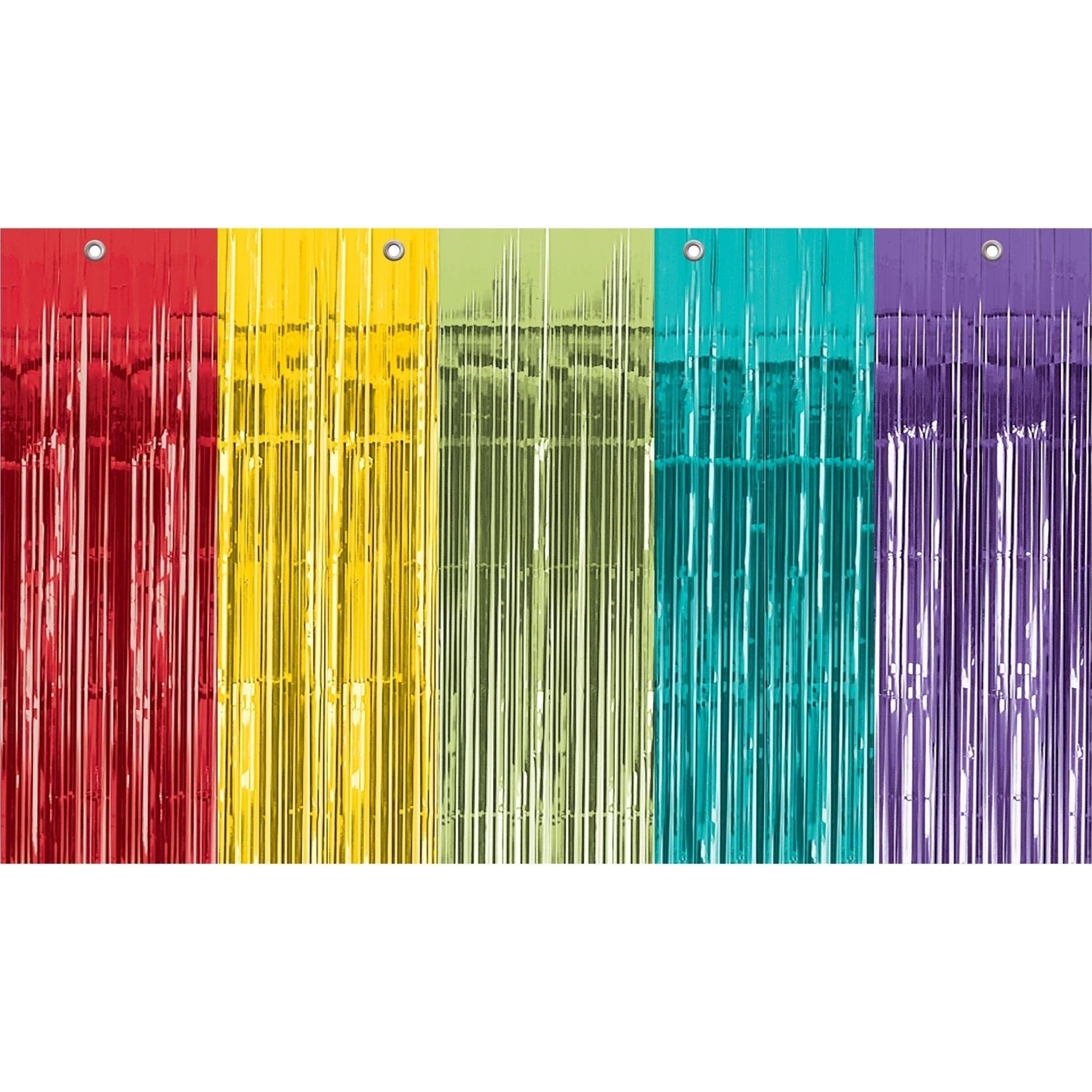 Transform your space with our Curtain - Rainbow, Plastic and Foil, 3' x 8'. This vibrant curtain adds a splash of color and whimsy to any room, making it perfect for children's spaces or festive occasions.
