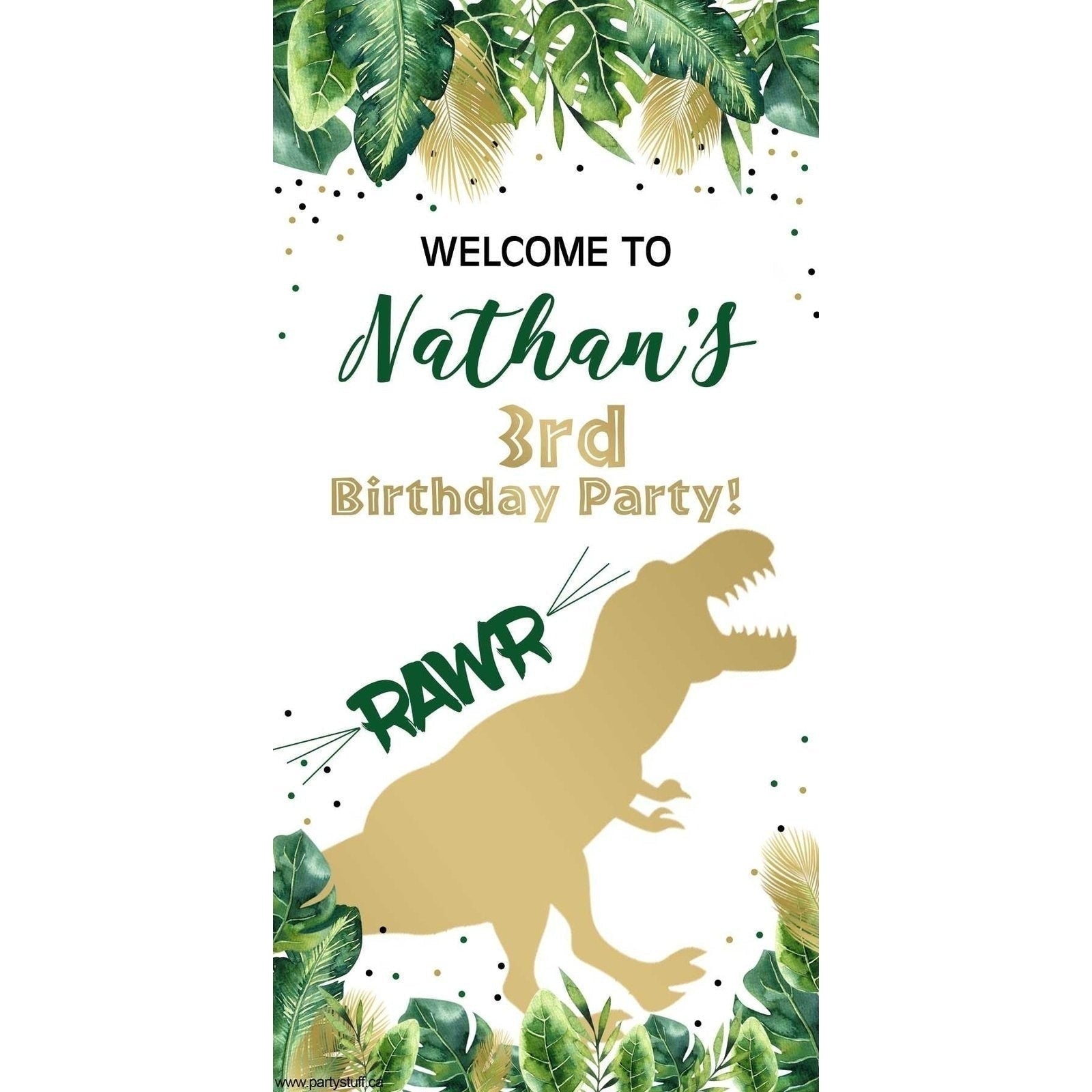Make your celebration unforgettable with our Customizable Deluxe Door Banner - Dinosaur Birthday. This vibrant and eye-catching banner is perfect for adding a personal touch to your dinosaur-themed birthday party. Crafted from durable vinyl, it measures 30" wide by 58" tall, making it a stunning focal point for your event.