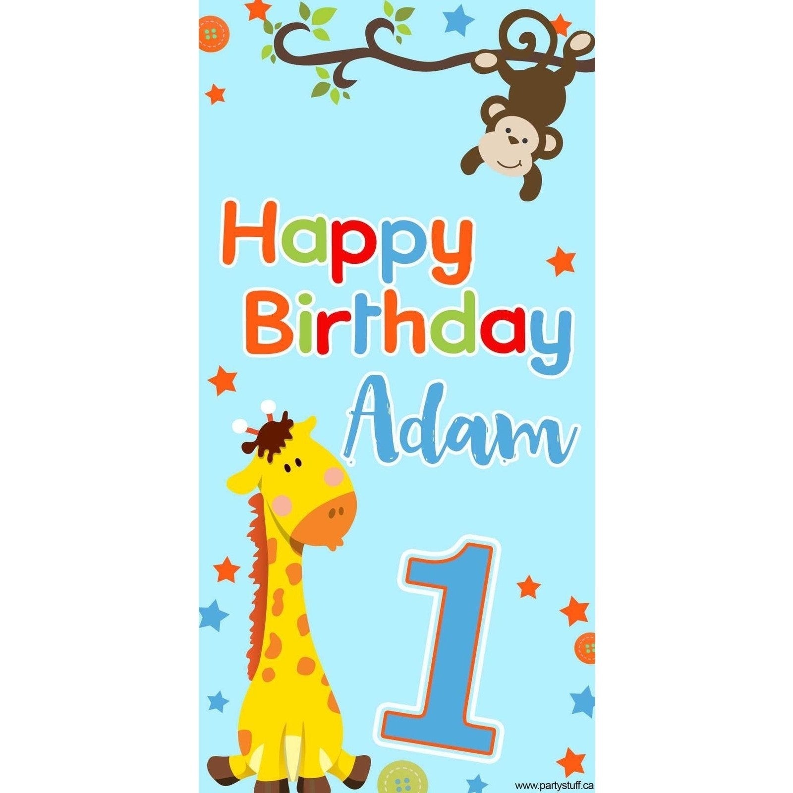 Make your child's special day unforgettable with our Customizable Deluxe Door Banner - Safari Birthday. Perfect for a wild and adventurous theme, this eye-catching banner will draw attention and set the mood for an exciting celebration. Measuring an impressive 30" wide by 58" tall, it is crafted from durable vinyl, ensuring it withstands both indoor and outdoor conditions while maintaining its vibrant colors.