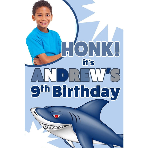 Celebrate your special day in style with our Customizable Yard Sign / Lawn Sign Birthday Shark with Picture. This vibrant and fun yard sign is perfect for any birthday celebration, making it an eye-catching addition to your outdoor decor. Measuring 16"x24", our rigid coroplast sign is designed for durability and weather resistance, ensuring it looks fantastic throughout your event.