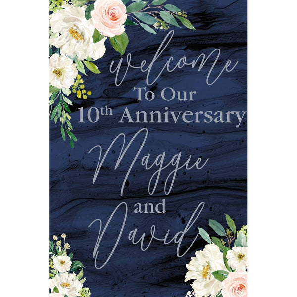 Introducing our Customizable Yard Sign / Lawn Sign Welcome Anniversary Floral Navy, the perfect addition to your anniversary celebration! Measuring 16"x24", this elegant sign is crafted from high-quality coroplast for durability and weather resistance.