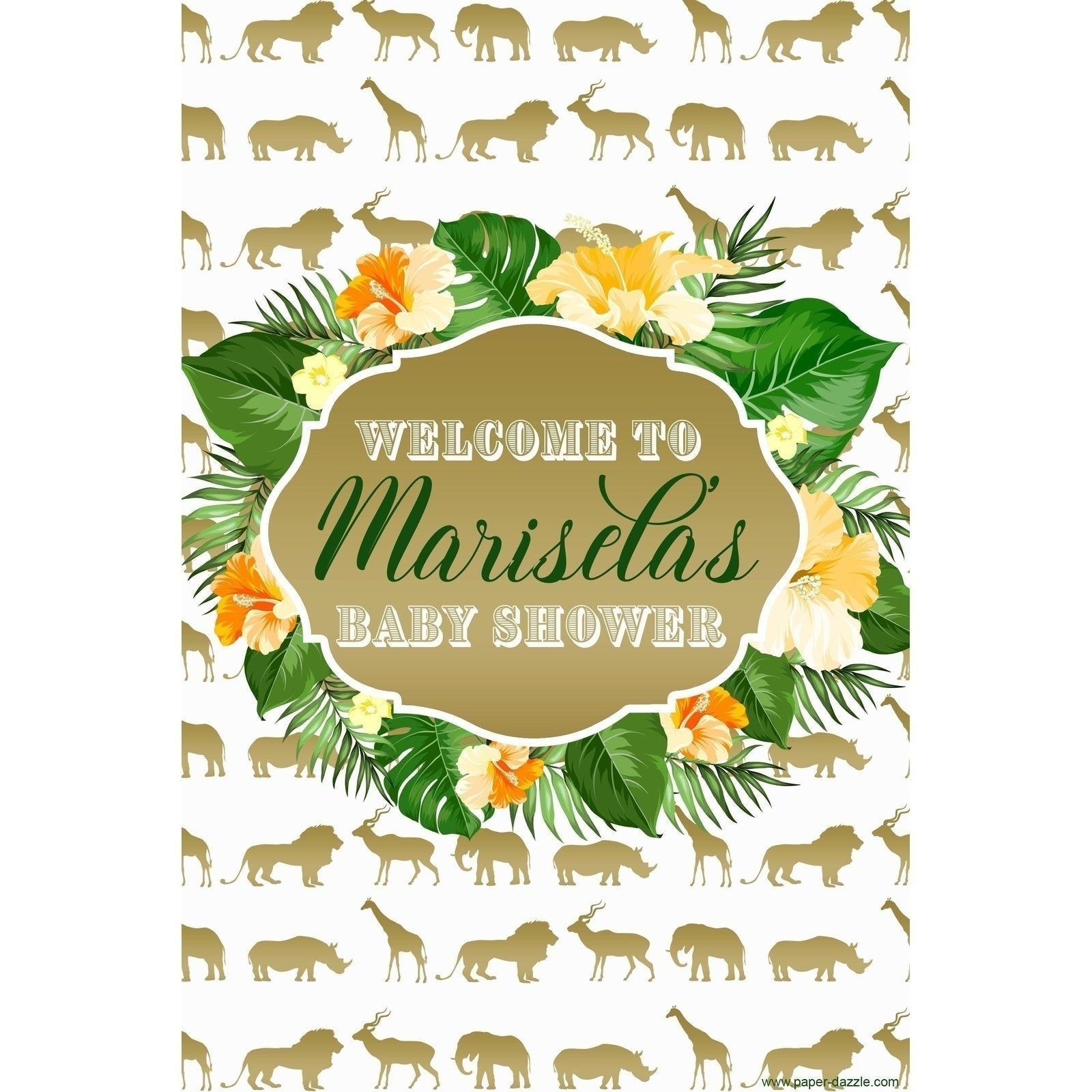 Celebrate the arrival of a little one with our Customizable Yard Sign / Lawn Sign Welcome Baby Shower Gold Animals. Measuring 16"x24", this stunning sign is crafted from rigid coroplast, ensuring durability for both indoor and outdoor use.
