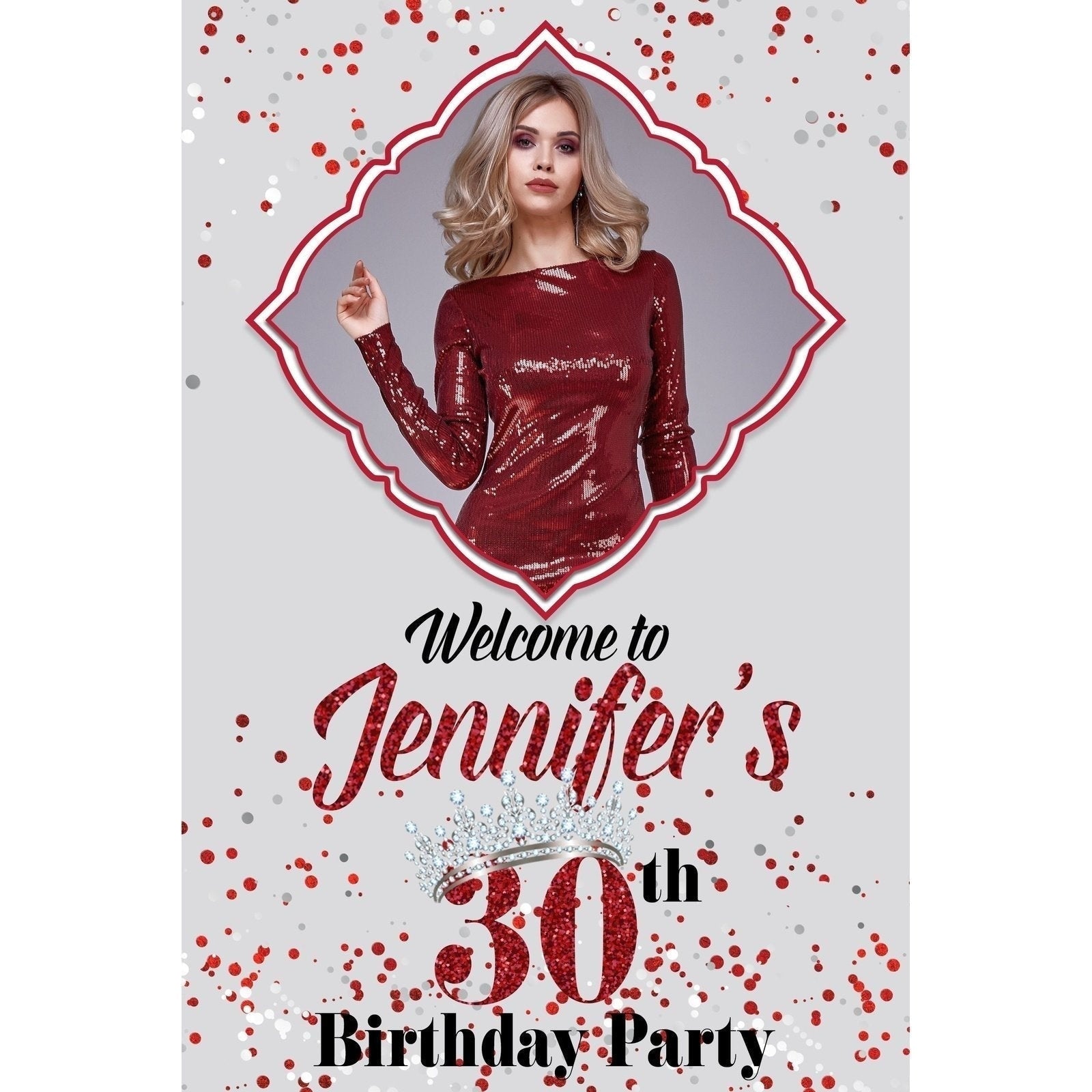 Celebrate your special moments with our Customizable Yard Sign / Lawn Sign Welcome Birthday Red Glitter with Photo. Perfect for birthday parties, this vibrant sign will make your celebration unforgettable.