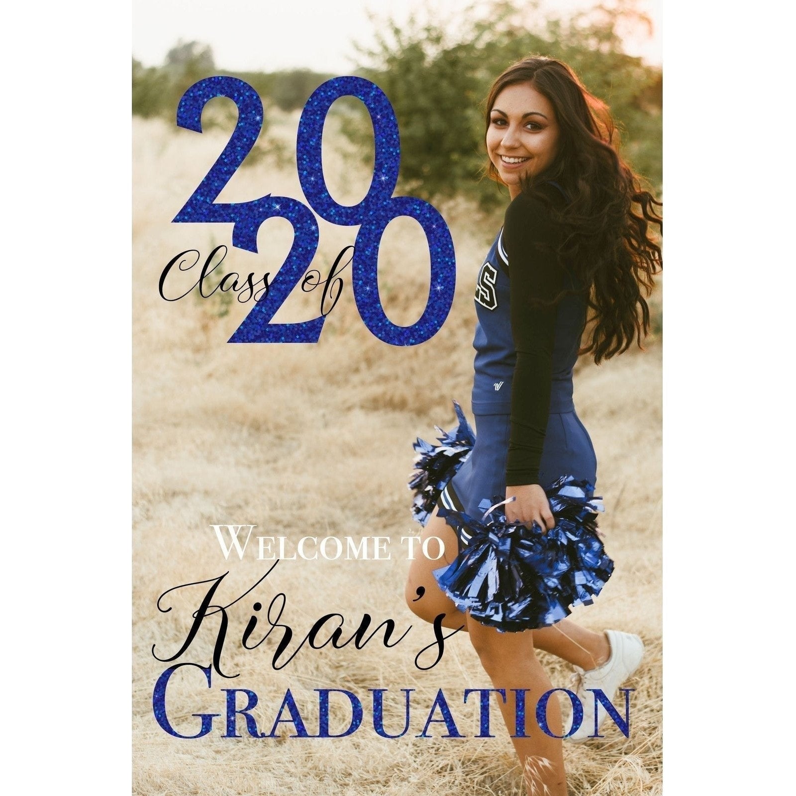 Whether it's for a backyard gathering or a large celebration, our Customizable Yard Sign / Lawn Sign Welcome Grad Photo Backdrop Blue Glitter is an essential addition to your graduation festivities. It not only serves as a delightful decoration but also creates a memorable photo backdrop for capturing the essence of this milestone event. Order yours today and make your graduate feel extra special!