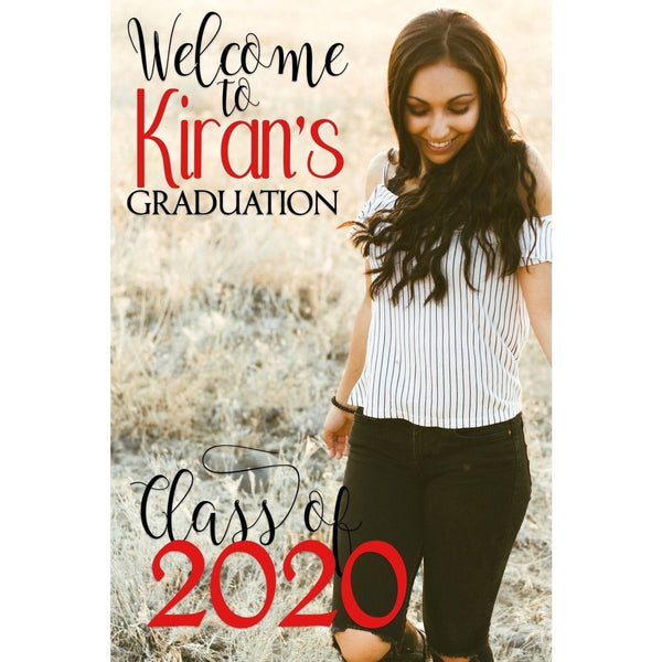 Celebrate your milestone with our Customizable Yard Sign / Lawn Sign Welcome Graduation Photo Backdrop Red. This vibrant sign is designed to make your graduation party truly unforgettable. Measuring 16"x24", it provides ample space for personalization, allowing you to add names, dates, or heartfelt messages.