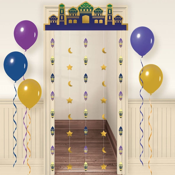 Enhance your festive celebrations with our beautiful Eid Door Curtain, a perfect addition to your home during Ramadan and Eid. This stunning door curtain measures 75 4/5" x 39" and is crafted from high-quality hot-stamped cardboard adorned with foil and intricate paper cutouts. It effortlessly combines elegance with functionality, setting the tone for your joyous occasions.