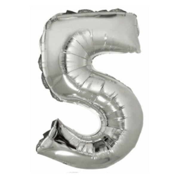 Introducing the Foil Balloon - Mini Number Silver 5 (16 Inch Air-filled Only, Not Packaged), the ultimate decoration for your special celebrations! This stunning balloon features a shiny silver finish that will undoubtedly catch the eye and set the festive mood.
