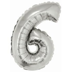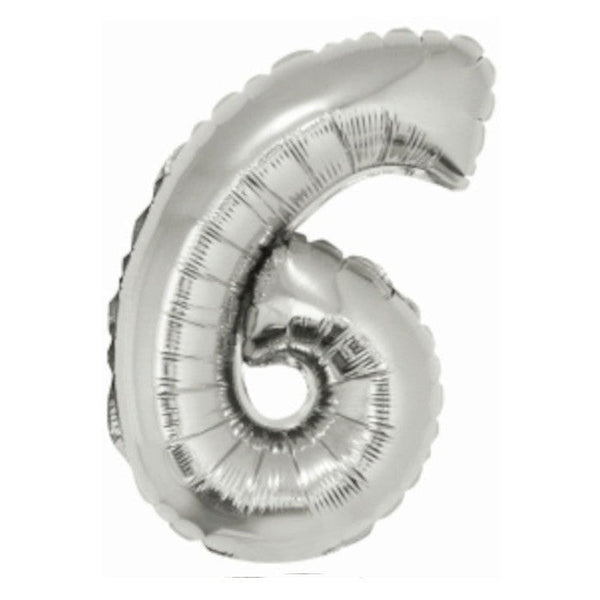 Foil Balloon - Mini Number Silver 6 (16 Inch Air-filled Only, Not Packaged)