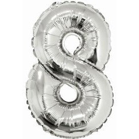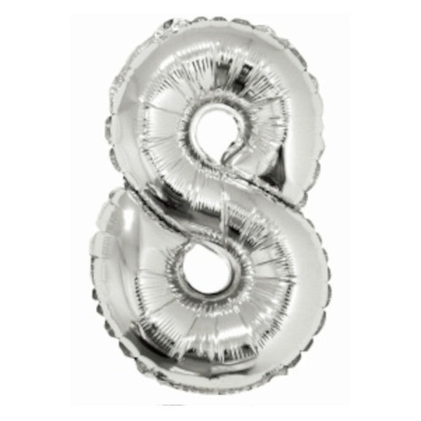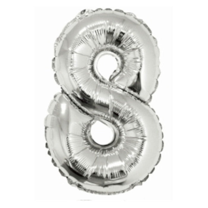 Foil Balloon - Mini Number Silver 8 (16 Inch Air-filled Only, Not Packaged)