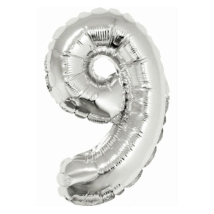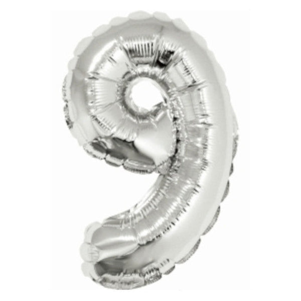 Foil Balloon - Mini Number Silver 9 (16 Inch Air-filled Only, Not Packaged)