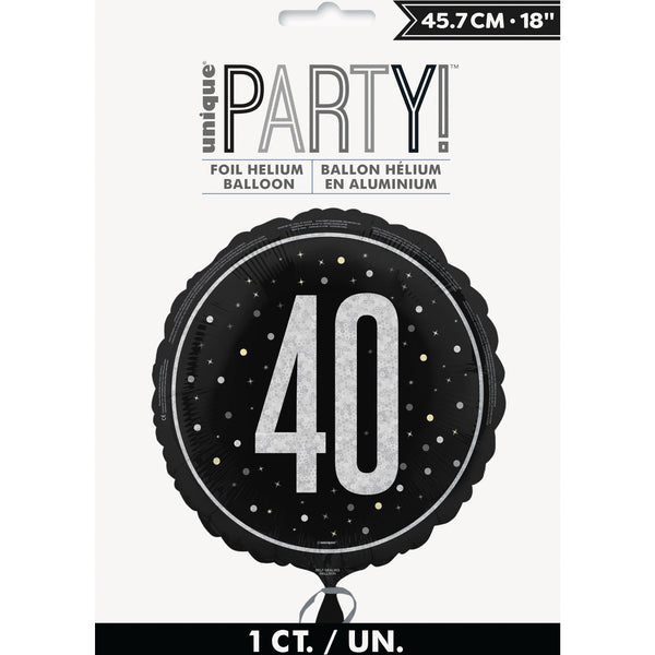 Make the 40th birthday celebration memorable with the Glitz Black 18" Foil Balloon 40th Birthday. Order yours today and elevate your party décor to the next level!