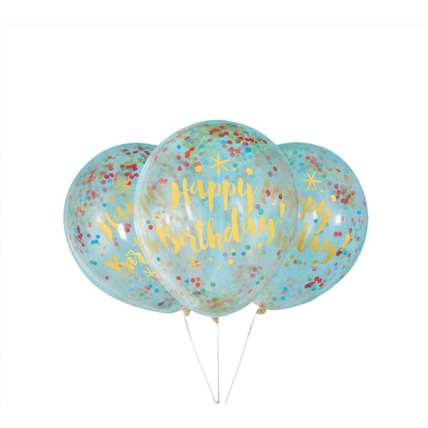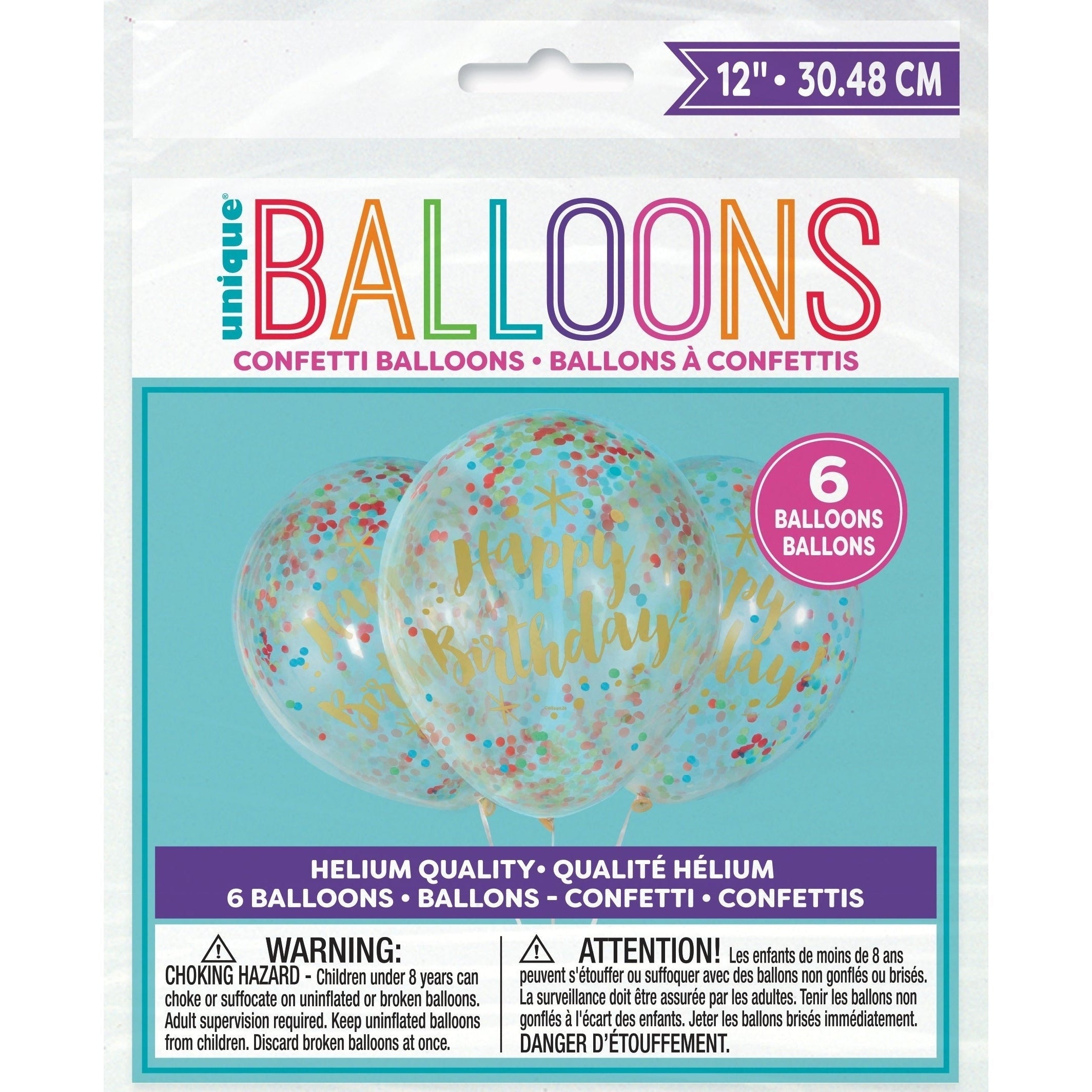 Celebrate in style with our Balloons - Latex, Glitzy Gold, Birthday Clear with Confetti 12", 6 Count. Perfect for any festive occasion, these stunning balloons feature a beautiful glitzy gold design and transparent finish filled with shimmering confetti, creating a breathtaking visual display.